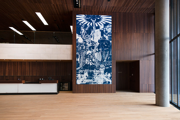 Das Publikum ist aber auch außerhalb der Vorstellungen willkommen und kann sich im KlangFoyer einen spielerischen Einblick in die Materie verschaffen. Dieser in der Theaterwelt einzigartige Erlebnisparcours entstand in Zusammenarbeit mit dem Ars Electronica Futurelab und überrascht auf vielen Sinnesebenen.